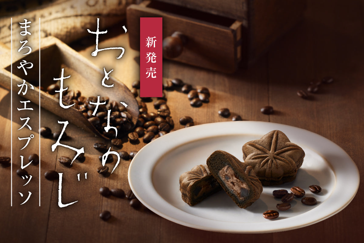 「おとなのもみじ まろやかエスプレッソ」は、香り高い珈琲を練り込んだ生地に、なめらかな餡と珈琲ゼリーを合わせた、大人仕立てのもみじ饅頭です。