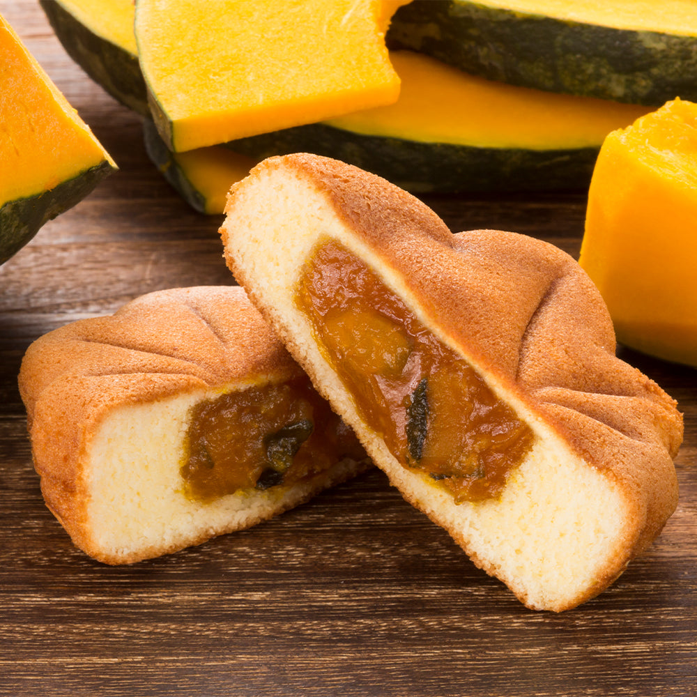 かぼちゃ餡(かぼちゃ、砂糖、水飴、その他)(広島県製造)、殺菌液卵、小麦粉、砂糖、植物油脂、水飴、乳酸発酵卵白、麦芽糖、かぼちゃペースト(果糖ぶどう糖液糖、かぼちゃ、寒天)/トレハロース、乳化剤、膨張剤、糊料(カラギナン)、香料、着色料(紅麹、カロチノイド)、pH調整剤、酸味料(一部に小麦・卵・大豆を含む)