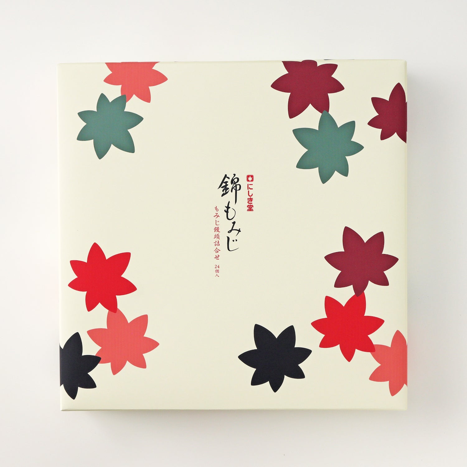内容量 | もみじ饅頭×4、粒あんもみじ×4、チーズクリームモミジ×4、チョコレートモミジ×4、お芋もみじ×4、黒ごまもみじ×4 |